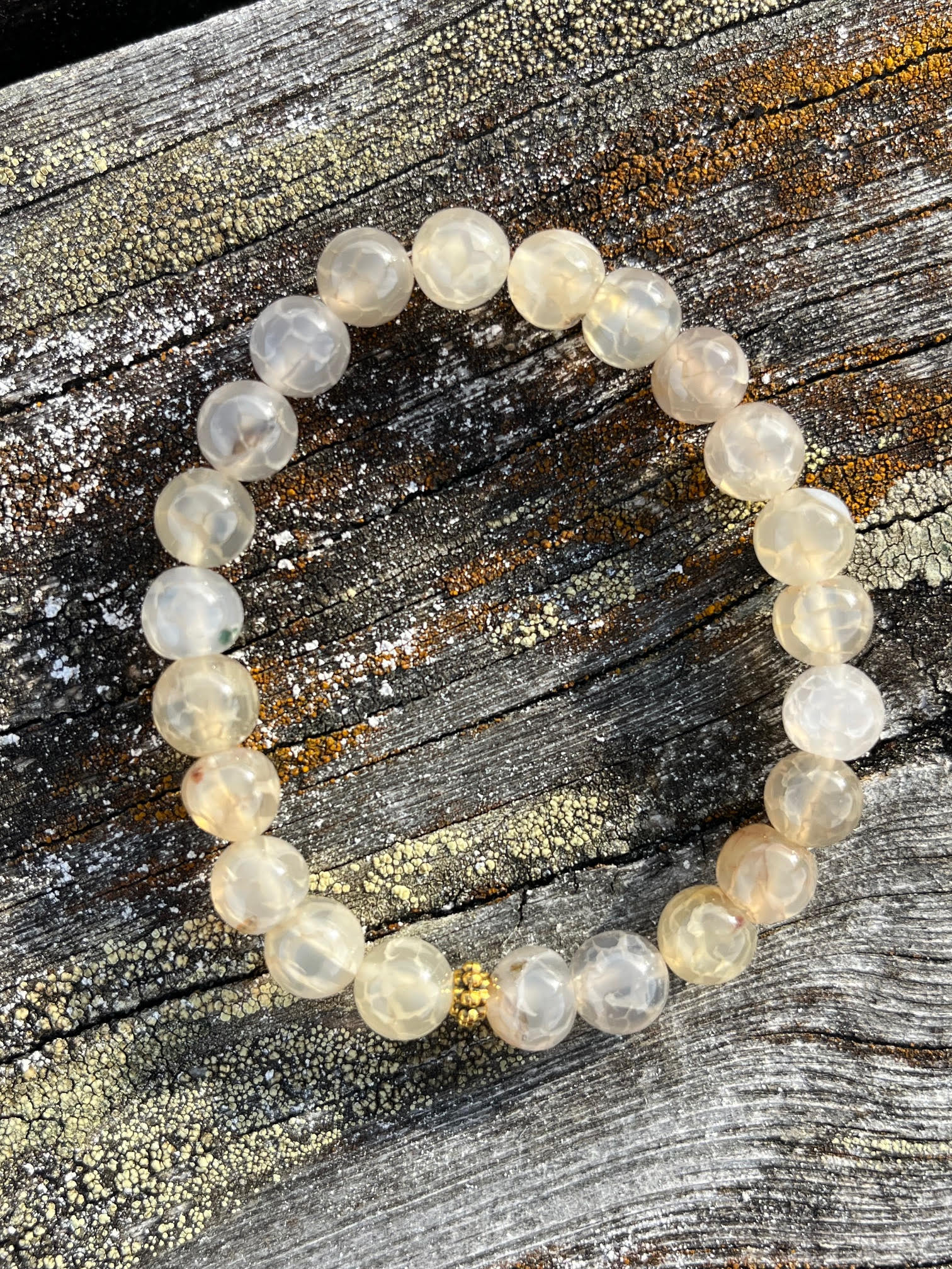 Naturlig agat sentrerer og balanserer energien din, samtidig som den stabiliserer din fysiske energi. Det er en god jordingsstein som reduserer negativitet og styrker selvaksept. Kulene er krakelert for ekstra spill.